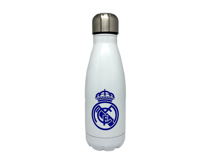 BOTELLA BLANCA DE ACERO 550ML REAL MADRID. PRODUCTO OFICIAL.