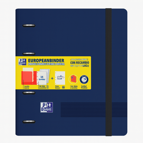 El Europeanbinder + de LIVE & GO es extra resistente y ligero gracias al material con el que está fabricado. Su apertura 360º permite ahorrar espacio en el escritorio o escribir utilizándola como soporte. Olvídate de taladrar todos los documentos o perder las fotocopias gracias a su bolsa portadocumentos interior. Es ideal para aquellos que quieren transportar sus apuntes de forma ordenada ya que se puede transportar cómodamente y además tiene un ancho especial para incorporar separadores y fundas. Esta carpeta con recambio tiene un cierre con goma elástica a juego con la tapa. Incluye un recambio de 100 hojas con bandas color. El papel es de 90 gramos OptikPaper«: la tinta no traspasa. El recambio es compatible con la aplicación Scribzee para poder escanear y compartir tus notas.