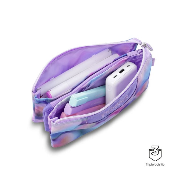 El estuche Tablero es un accesorio escolar práctico y divertido que combina organización, funcionalidad y un toque de estilo brillante. Su diseño compacto resulta ideal para que los más pequeños lleven todo su material de forma ordenada y siempre a mano. Cuenta con tres bolsillos que permiten clasificar los útiles de escritura y mantenerlos bien distribuidos. Además, incorpora organizadores elásticos en su interior para fijar lápices o bolígrafos, así como un sistema “abre fácil” que facilita el uso diario incluso en las rutinas más rápidas. Su tejido repelente a líquidos protege el contenido frente a salpicaduras, mientras que sus dimensiones de 22 × 11 × 3,5 cm y capacidad de 0,85 litros lo convierten en una pieza ligera y cómoda de transportar. Está confeccionado en poliéster 100% reciclado a partir de botellas plásticas (RPET), con forro de poliéster que refuerza su resistencia al uso cotidiano. Un estuche escolar funcional, sostenible y con un diseño lleno de brillo que aporta alegría a cada jornada de clases.