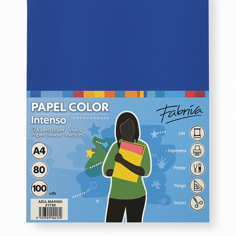 PAPEL A4 80GR PAQUETE 100 HOJAS LISO AZUL MARINO. FABRISA.