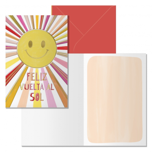 TARJETA DE FELICITACIÓN FELIZ VUELTA AL SOL. DOHE.