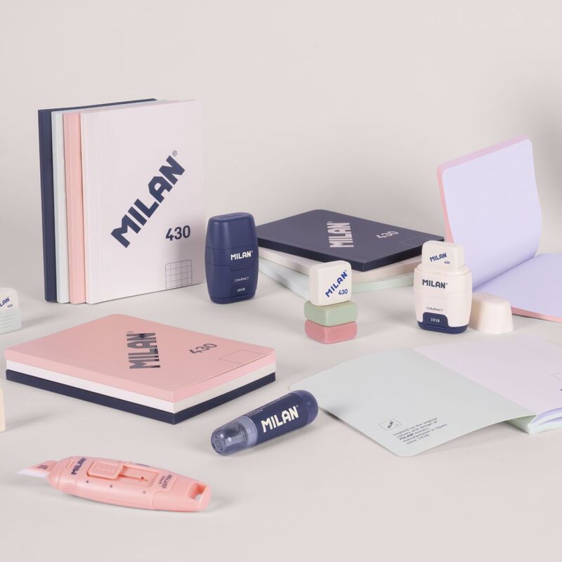 Libreta A6 encolada (sin grapas) y tapa flexible. 48 hojas de papel cuadriculado (5 x 5 mm). Papel de 95 gr/m² de alta calidad, microperforado. Cubierta de cartón flexible y logotipo MILAN brillante en relieve. Color rosa. Colección 430 since 1918, inspirada en los colores y diseño originales de las gomas de borrar MILAN, fabricadas en España desde 1918. Medida A6 (10,5 x 14,8 x 2 cm).